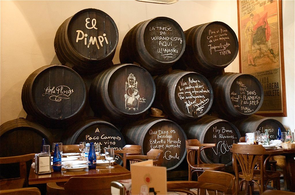 Se dopo la visita e la scarpinata per arrivare su in cima vorrete riposarvi, in Calle alcazabilla si trova uno dei locali più famosi di Malaga , Il Pimpi, a Malaga è un’istituzione per cui è una tappa obbligata e infatti c’è sempre coda per sedere ai suoi tavoli. Il locale è enorme e gli interni sono un inno alla tradizione e alla sua gloriosa storia: antichi cartelloni di corride, pareti tappezzate di foto con personaggi celebri che sono stati nel locale; corridoi e sale decorati con botti di vino autografate dagli stessi, tra cui si distinguono Picasso, la duchessa d’Alba, Antonio Banderas (Malagueño molto amato e che con un po’ di fortuna potreste anche incontrare da queste parti).