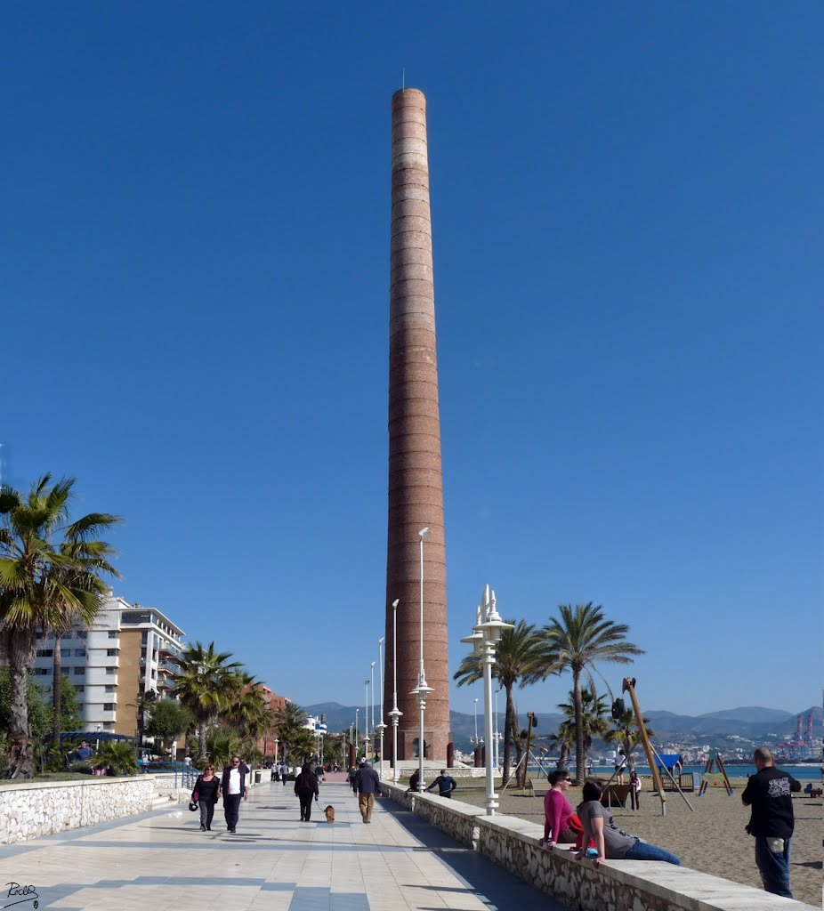 Durante il cammino vi imbatterete in una ciminiera, conosciuta come la “Chimenea Mónica”,a testimonianza del passato di Malaga come potenza industriale (nella seconda metà dell’800 Malaga era la seconda città più industrializzata di Spagna) la zona circostante si sviluppò come quartiere operaio, il barrio de Huelin.