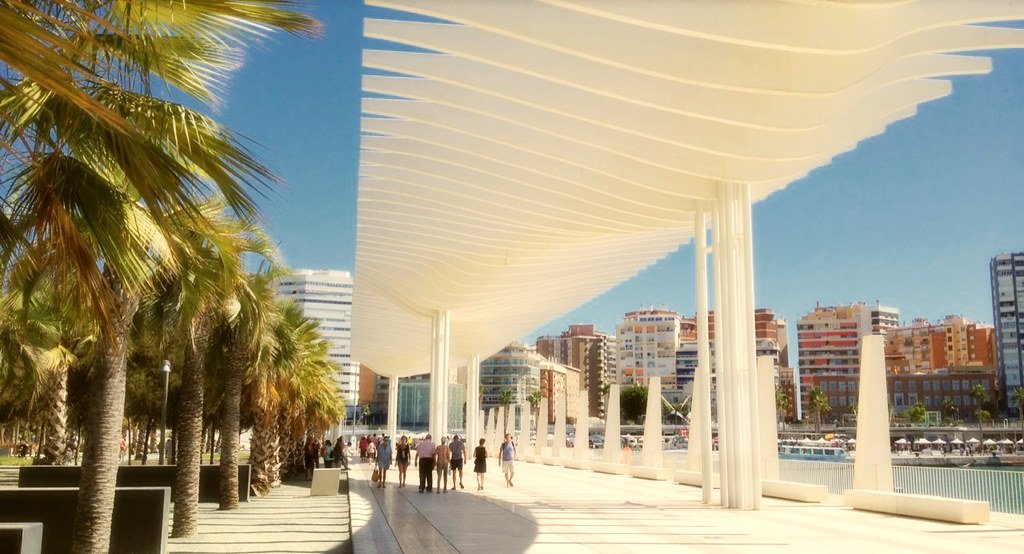 Attraversato il paseo del parque e il centro Pompidou ci si trova di fronte al Muelle 1, uno shopping centre all’aria aperta con numerosi ristoranti e negozi. Inaugurato nel 2011, il muelle 1 insieme al palmeral de las Sorpresas (letteralmente il palmeto delle sorprese) rappresenta un luogo in cui il design moderno si fonde armoniosamente con la natura. Una bella passeggiata a piedi, in bici o in monopattino vi permette di apprezzare al meglio il luogo.