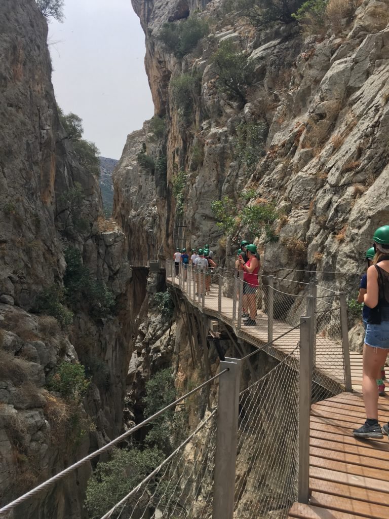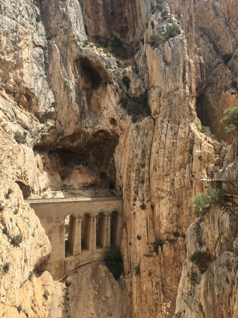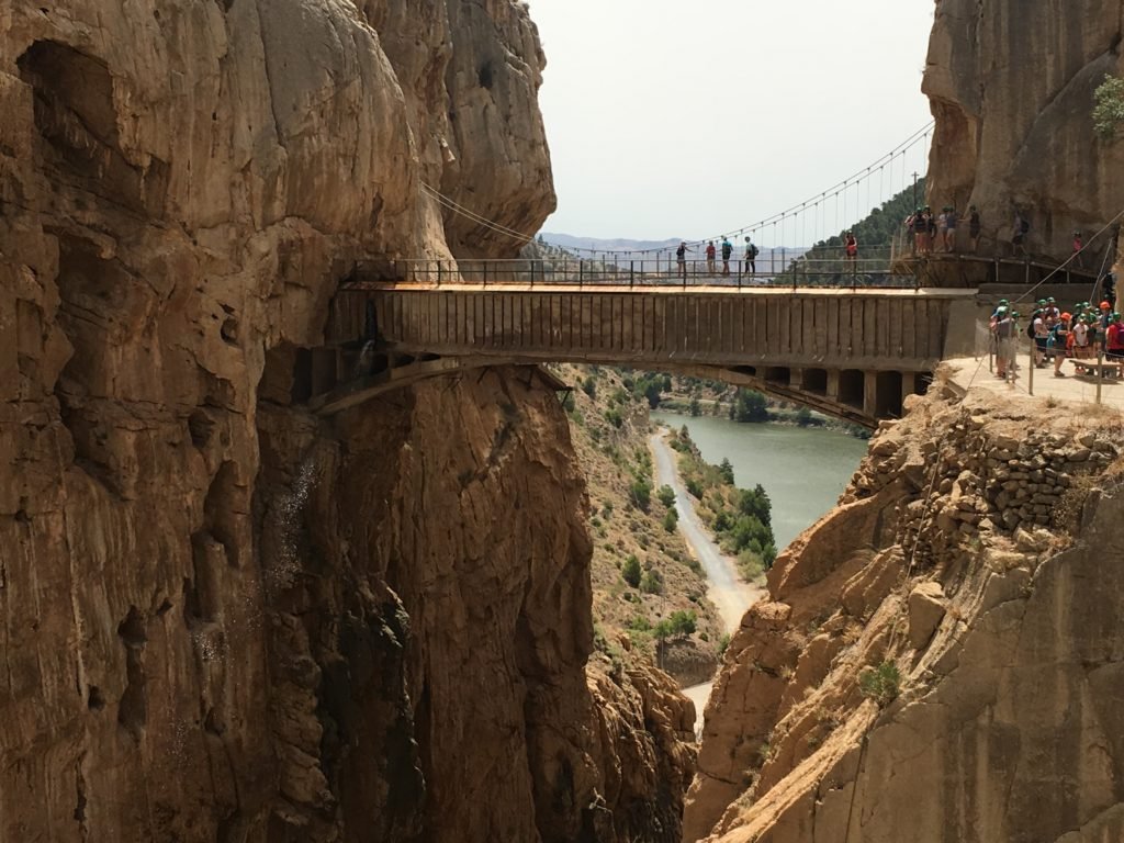 Vi sentirete un po’ Indiana Jones quando attraverserete questo incredibile sentiero costruito lungo le pareti del Desfiladero de los Gaitanes, sospeso a più di 100 metri sul fiume Guadalhorce. Il paesaggio è mozzafiato però se soffrite di vertigini vi suggerisco di limitarvi alla sola lettura del post, meglio non arrischiarsi!