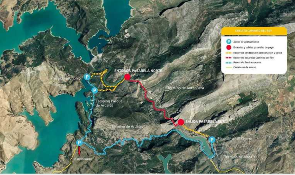 È importantissimo sapere che il Caminito è un percorso lineare, non circolare, e si può percorrere solo in un senso, da Ardales (entrata Nord), con arrivo a sud, El Chorro (Alora).